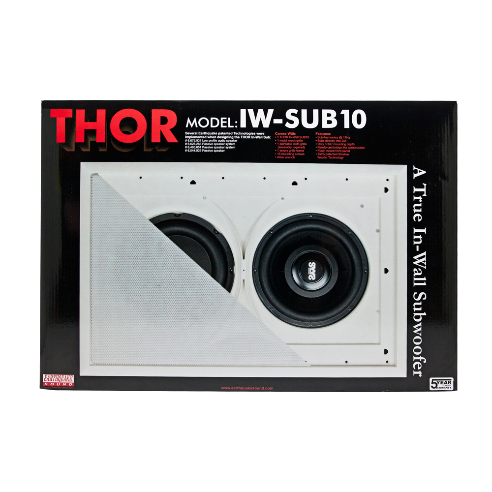 THOR 10″ In Wall Subwoofer with Slaps, Paintable Grill, Cloth Grill Earthquakes Thor In-wall subwoofer fills a long-awaited space in the In-wall market segment and distinguishes itself by being the only in-wall subwoofer with 20 Hz response.