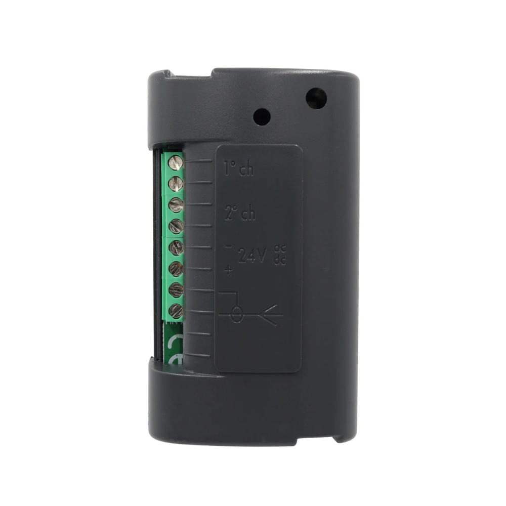 AAP B-ONE.2WB 433Mhz 2-Channel Universal Receiver in Box Key Features :- 433.92 MHz receiver with power supply 12-28 Vdc / 21-28 Vac N/O Contacts 2 channels with triple coding: Advanced Rolling Code, Rolling Code and Fixed Code 512 memoizable codes Encoding learned after first transmission with the transmitter Warranty: 2 Year Return to Base Warranty