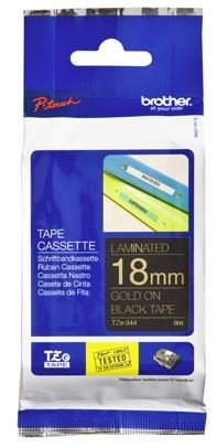 Brother TZe-344 18mm x 8m Gold on Black Tape