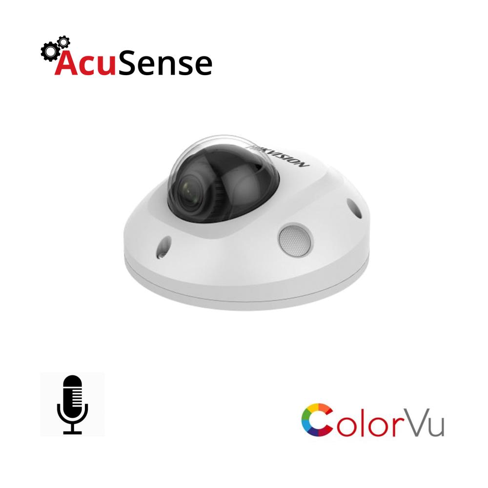 Hikvision DS-2CD2547G2-LS-2.8MM ColorVu H265 4MP PoE IP Warm-White-Light (30m) 130dB True-WDR Ultra-Low-Light (0.0005 Lux Colour) Vandalproof Weatherproof Mini Dome Wedge / Hockeypuck Camera with 2.8mm Fixed Lens – with Built-in Mic – Alarm Int/Out Key Features :- 4MP high resolution 2.8mm fixed lens Full time colour Triple stream H.265 compression 4 analytics Face Capture Smart motion detection IP67 weatherproof 130dB wide dynamic range Built in microphone Supports on board storage (up to 256GB) 12V DC & PoE (802.3af) Hikvision Product-Link