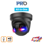 HiLook IPC-T289PH-MU/SL-BLK Panoramic H265 AI 4K 8MP Smart-Hybrid-Light (30m IR + 30m White-Light) Full-Colour 120dB True-WDR Low-Light (0.005 Lux Colour) Active-Deterrence (Strobe + Siren) Weatherproof Black Eyeball Turret Camera with 180° Ultra-Wide-Angle Horizontal FoV with 77° Vertical FoV – Built-in Mic + Speaker