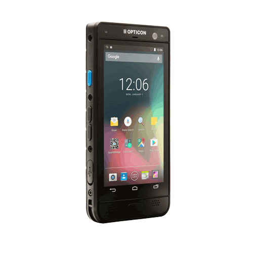 Mobile Computer – Android 6.0.1 – 4G/Wi-Fi supported rugged design – 5 inch full color FHD touch screen – 16 GB memory – 16 MP camera with auto focus – High performance Opticon scanning – Always connected through mobile data, Wi-Fi or Bluetooth – Protection rate at IP 67 – Optional bumper for drop down protection