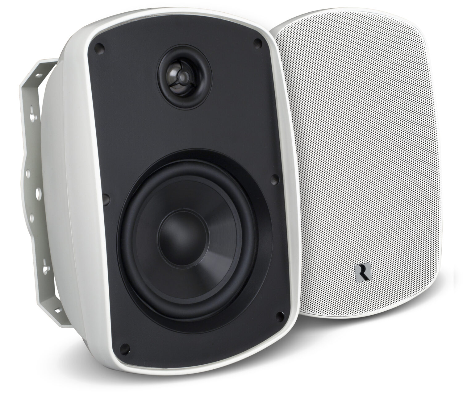 Outdoor Speakers 5.25″ Acclaim 5 Series 2-Way, Pair ( 5B55 ) – Russound The Acclaim 5 Series Outdoor Speakers are designed to deliver rich, full sound in extreme environments, such as a backyards or other areas subjected to temperature shifts and high moisture exposure. The high-efficiency design and multiple mounting options allow the speakers to be easily installed on a wall, eave, pole, corner or as a freestanding stereo pair. The speakers come equipped with features to ensure durability in any outdoor conditions. Speakers have been Sealed enclosures, salt-tested marine grade hardware, and aluminum grilles which makes the acclaim 5 Series OutBack speakers weather resistant. Drivers with polypropylene cones, rubber surrounds and 1” Teteron dome tweeters deliver full range audio through a wide range of temperatures. For a greater number of mounting options over previous Russound outdoor speakers, the new all aluminum mounting brackets allow for the traditional vertical or horizontal mounting options, as well as providing for mounting in a corner or on a pole. Features: Rugged design for all-season enjoyment Heavy-duty mounting bracket for sturdy installations 1″ Teteron Tweeter for crisp, clear high frequency reproduction Bookshelf Foot included for use on a shelf or table-top Gold-Plated push terminals for easy, corrosion-free wiring connections Specifications: Description: 2-way Outdoor Loudspeaker Pair Woofer: 5.25″ (133 mm) IMPP cone Tweeter: 1″ (25 mm) Teteron™ Mounting Options: Bookshelf foot, pole, flat or corner surface Dimensions: 11.25″ x 7.5″ x 7.5″ (28.57 x 19.05 x 19.05 cm) Terminals: 12 gauge gold-plated push connectors Grille: Aluminum Bracket: Aluminum Bookshelf foot: Yes Recommended Power: 10 – 125 watts RMS Sensitivity: 90 dB SPL (2.83V @ 1m) Frequency Response: 72 Hz – 20 kHz ± 3 dB Nominal Impedance: 8 ohm Unit Weight: 5.4 lbs. (2.4 kg) Product SKUs 5B55-B Black 5B55-W White