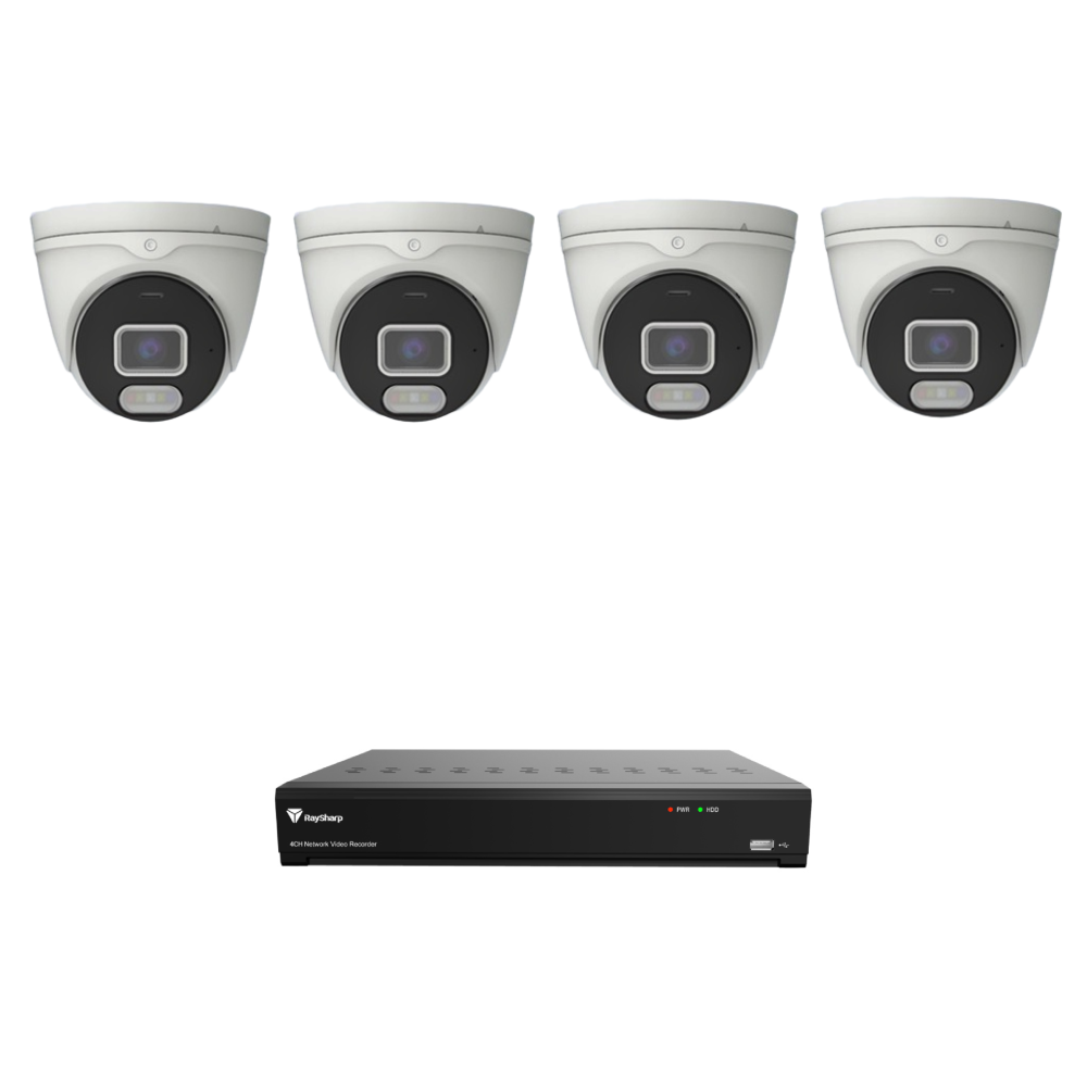 Raysharp RS5MPIPCCTVKIT3 5MP IP CCTV Kit # 3 with 1 * RS-N2208HR-PR-E 8-CH NVR (without HDD) + 4 * RS-CH356M4MJG-HALTF-LFW28PW 5MP All-in-One IP Turret Cameras