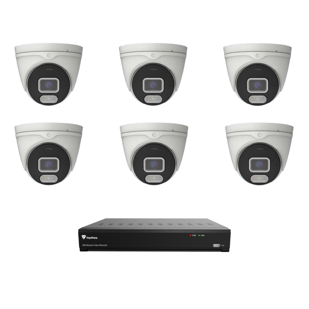 Raysharp RS5MPIPCCTVKIT4 5MP IP CCTV Kit # 4 with 1 * RS-N2208HR-PR-E 8-CH NVR (without HDD) + 6 * RS-CH356M4MJG-HALTF-LFW28PW 5MP All-in-One IP Turret Cameras