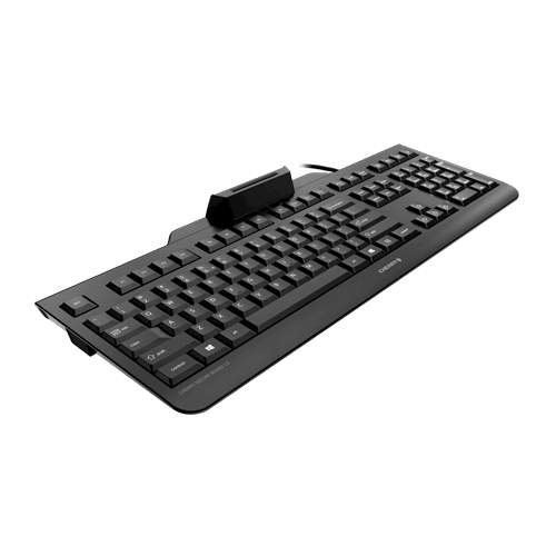 Cherry Secure Board1.0 Keyboard /w Smart Card Reader Blk CHJKA0400SCB-U The SECURE BOARD 1.0 is an ergonomic keyboard with an integrated reader for smart cards and cards/tags with an RF/NFC interface. For added security and confidentiality, the keyboard can be switched to a secure mode. Now the device can authenticate itself with a certificate and the key transmission is encrypted. This renders hardware key loggers useless and because the standard keyboard channel is locked, BadUSB attacks cannot be carried out on it. Thin clients that have the necessary software integrated are particularly suitable for using these functions.