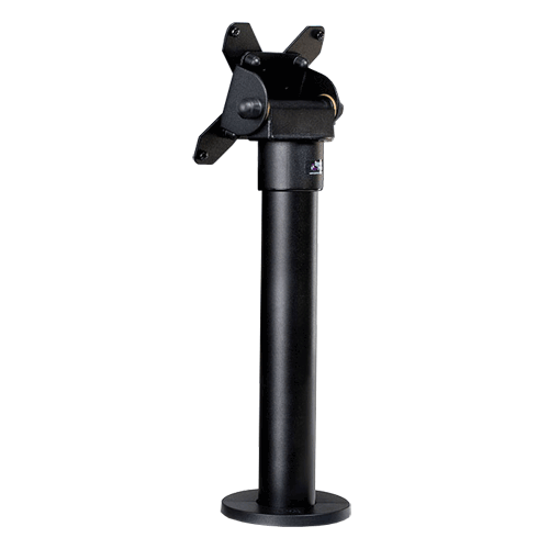 Spacepole Top Mount – Screen tilt adjustment: +10°/-90°, Recommended maximum rotation on pole 310°, Supports 75 x 75 & 100 x 100, 300mm pole, Footprint diameter 97mm, Cable hole at the bottom, Internal cable management, External cable management clip for additional peripherals, locking ring for stability & support.