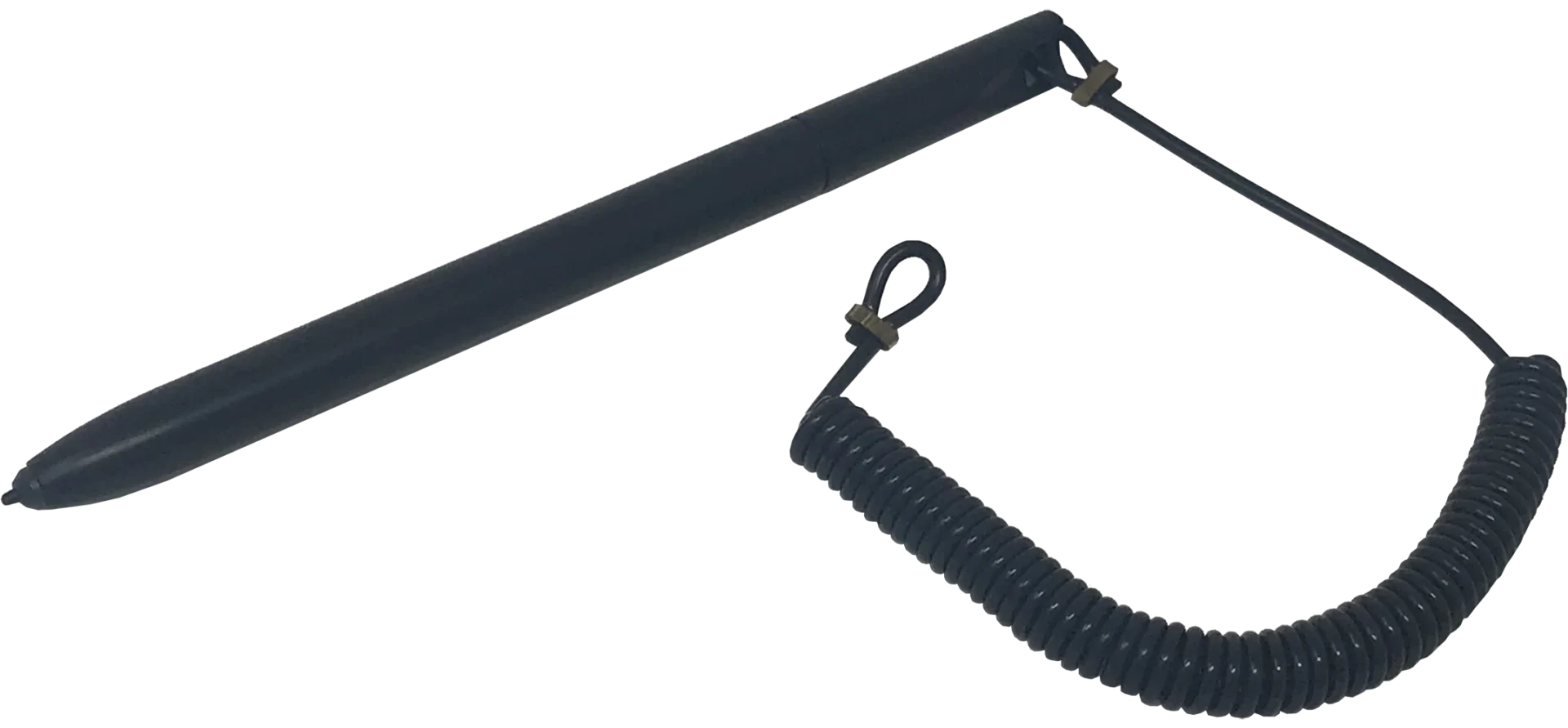 The pen comes with a curly tether designed to attach securely to the back of the GemView 16 tablet. This prevents loss or theft and keeps the pen readily available for users.