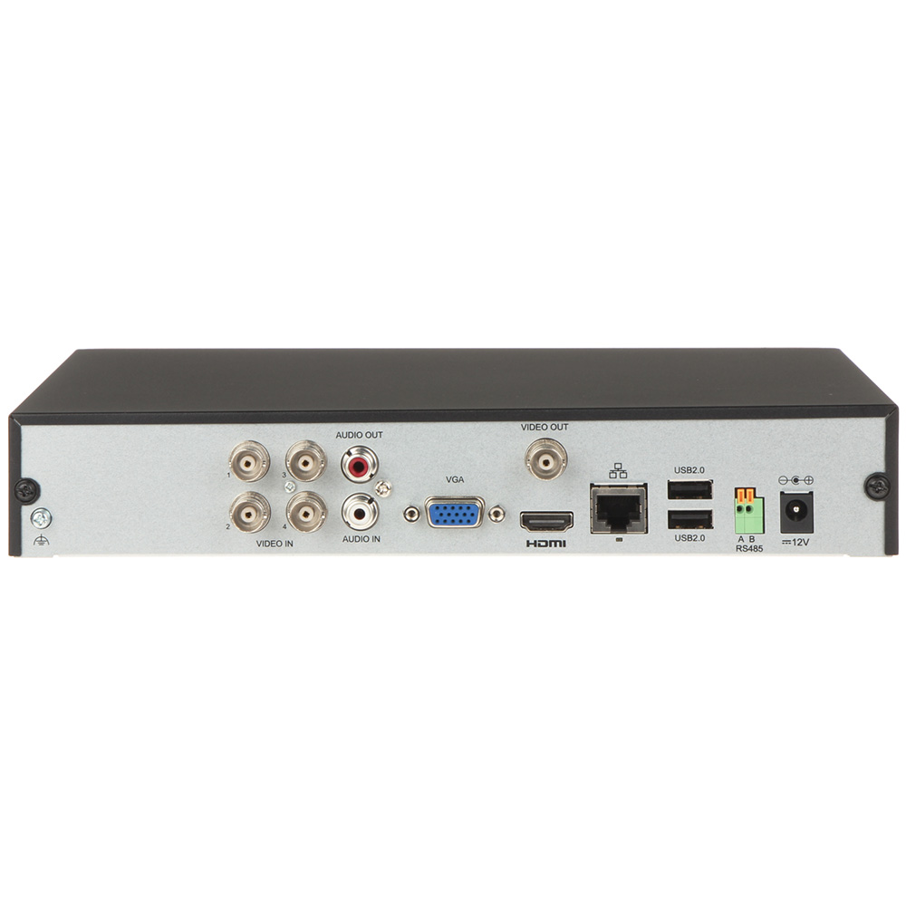 Compact 1U H265 4K 4-Channel Pentabrid (HDTVI / HDCVI / AHD / CVBS / IP) DVR – 4x BNC Inputs + 2x IPC Support Features :- Support H.265 / H.264 video formats Support audio over coaxial cable Support TVI, AHD, CVI, CVBS, IP cameras with adaptive access 4-channel BNC input Support 1-ch HDMI output, 1-ch VGA output at up to 1920*1080 Long transmission distance over coaxial cable Note – This can be used as an encoder to turn analogue (and HD analogue) cameras into IPC on an Uniview NVR Hardware characteristics :- 1 x VGA port (max. 1080P resolution) 1 x HDMI port (max. 1080 resolution) – Same display output as VGA 1 x CVBS output 1 x 3.5″ SATA HDD port (max. 6TB HDD per port) 2 x USB ports (two rear) 1 x RS-485 port 4 x BNC inputs (to support Analogue / AHD / HDCVI / HDTVI cameras)* – Check specifications for resolution support 1 x LAN port (10/100Mbps) No Alarm input ports No Alarm output ports 1 x Audio RCA input port 1 x Audio RCA output port